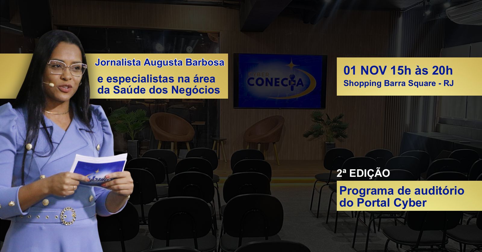 Um programa com a força do jornalismo e o brilho da comunicação empresarial, conduzido pela jornalista Augusta Barbosa, criadora do Portal Cyber.